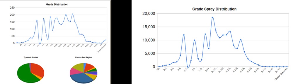 Franck Vee wrote: I don't think it has changed much. redriverclimbing.com has overview stats. I took a screenshot. Notice that even though there are more 5.11b's and 5.12b's than 5.10 a/b/c/d available at the Red, there are FAR more ticks of 5.10a's than of 5.11b's or 5.12b's. And if they didn't break the 5.9's into 5.9 and 5.9+, the peak would be at 5.9, not even at 5.10a, thogh it would be close between 5.9 and 5.10a. rrc.com doesn't allow multiple ticks of the same route, the way mountain project does, so it isn't as if 5.12 climbers are just running laps on 5.10, and ticking every one of them. Anyone who's been to the Red, know that crags with a bunch of 5.10s are always mobbed. |