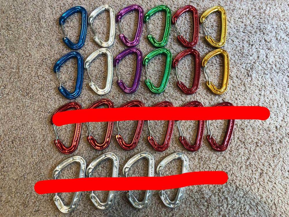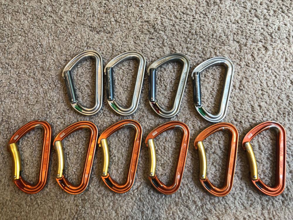 Shipping: FREE if you are buying more than $100 worth of gear ~if not~ $6 within the US. Will ship anywhere else for actual cost Petzl Spirits: $7 Black Diamond Ovalwire: $5 Random biners in photo with random biners: $3.50 Ropes/Slings: 35M Sterling Fusion Ion R 9.4mm - New: $90 30M Metolius Monster 9mm Static - New: $65 Ice Axes/Tools: BD Raven Ultra 50cm: $75 - Like new, carried up Rainier and didn't use it. Clothing/Shoes: Arcteryx Zeta LT – Medium – 11.8 oz – arcteryx.com/us/en/shop/men… . Perfect Condition. Jacket is 2018 model, used for a couple days. – $225 Mountain Hardwear Quasar – Small – 7.3 oz – 3 Layer eVent -Good shape, couple small spots – $85 Marmot Scree Pants - 30 Short - Fit like a 31 x 31. - Link To REI Info Page- Lightly used with a couple pinprick abrasions - $40 Patagonia Simul Alpine Guide Pants Forge Grey- New - $70 Link Other: Metolius Safe Tech Trad - Small: $50 - New Montbell Beanie: Looks nice but doesn't seem very warm. Probably good for bouldering in hot weather- $10 |