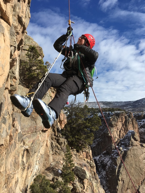 I climbed outside nineteen days (5610 vert) in November, including sending the crux of a .12a barefoot. My girlfriend also independently decided that she wanted to get into big walling and asked me to teach her to jumar. We skiied into the North Rim last week and rapped the top pitch of Scenic to practice. |