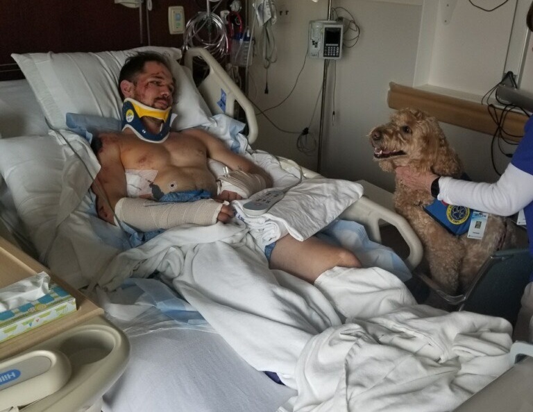 No second lap? Heal up bro and thanks for the share. Hope you stick the landing next time. I took one longer than that once although hitting some ledges made for less impact even though there was more hits. I laughed when I later saw Homer Simpson do the same as me, although he said DOH multiple times and I was quickly knocked unconscious. Regardless, it helped me figure the process out although Gopros had not been invented as it was @ 45 years back when this occurred. I had a lot of holes in my knowledge which I was not aware of. Really, but ironed them out over time. Anyway, LIKE EVERYONE ELSE HERE, glad it looks like you'll be ok in a bit, that's a rough hit to take. PS, good looking pup. |