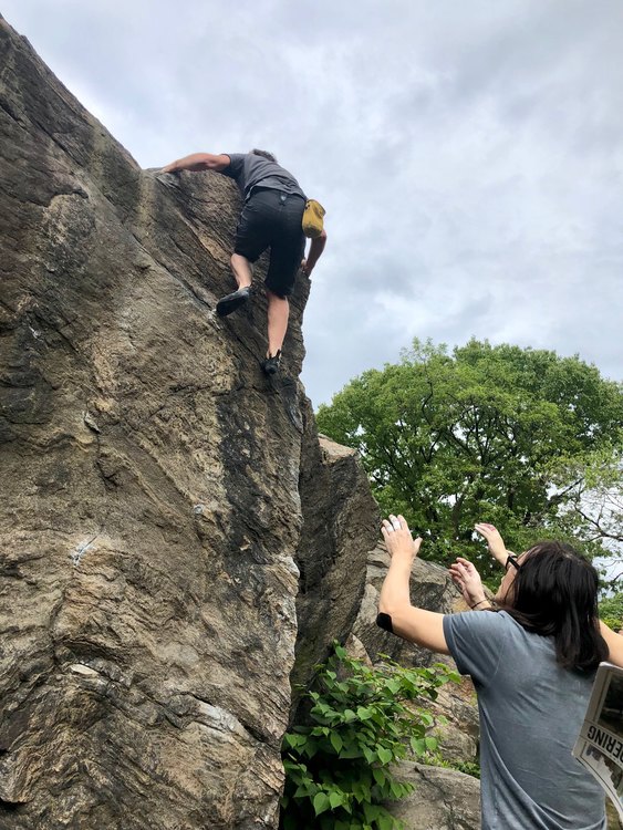 Randy wrote: Ticked a brand new area today while visiting my two girls. Perfect Spring day in Central Park. Cool arete at Cat Rock. Nice one RV killing it! |
