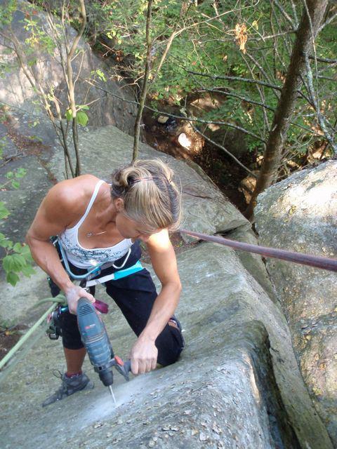 The truth of it, unfortunately, at least for more top down , pre-prepped style, is there are very few who actually do FAs start to finish from finding a line, fully cleaning, equipping and doing the lead. Most of the time it is a guy doing 75% of the work and handing it over for their mate or climbing partner to get the lead. It is a lot of physical work to sustain the effort to do a good job and most, male or female, pretty quickly find it ridiculous. I haven't heard of a single woman in the NE who has gone out and bought their own drill and bolting kit (though they do buy them for their husbands/BFs!). Two women that I know who have been willing to put sustained elbow grease in on FAs are Paula King and Amy Colburn. Torie Kidd also seems to be in to new routing and willing to put the work in. There are, especially in the past, more ground up style trad done by women I think. |