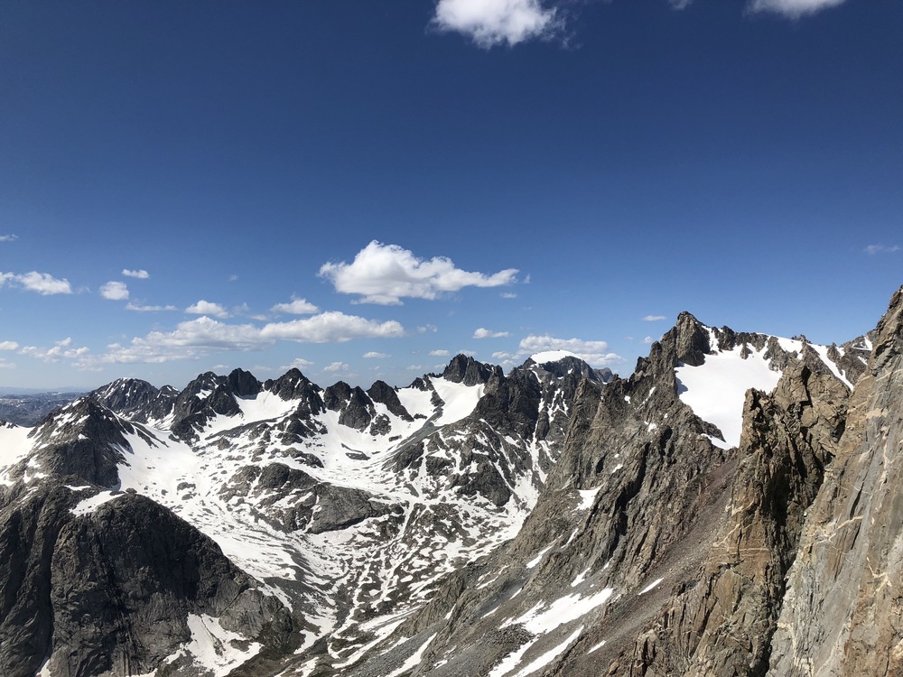 Just hiked out of Titcomb yesterday. We climbed wishbone and the north ridge of Ellingwood (also known as Harrower). The mosquitoes were unlike anything I have ever seen. No crampons needed and we didn’t use our axes. |