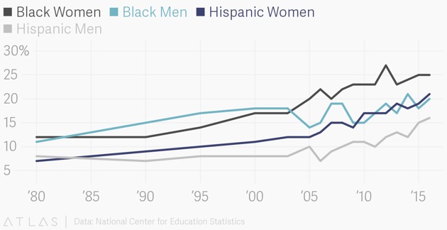Kris Fiore wrote: easily the most sacred of his [Kris'] beliefs being in the pursuit of a more balanced society respectful of all genders and gender expressions. He sees this pursuit as a goal that, while it may not ever be achieved, should never be abandoned. https://www.unirondack.org/profile/kris-fiore/ So do these imbalances bother a sacred belief of achieving gender balance across society? Or since that belief is sacred, is it beyond influence of evidence and reconsideration? Or not so much, such they contradict intersectionalist theory which says that the darker skinned and female cohorts, subject to the greatest degree of institutional oppression, should do the worst on outcomes? |