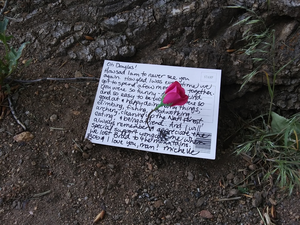 Oh Douglas! How sad I am to never see you again. How glad I was everytime we got to spend a few moments together. You were so funny - always kind and so easy to be with. You were so good at and happy doing many things; climbing, fishing, woodworking, archery, cleaning up the Nat'l Forest, eating, and being a friend. And I will always remember and appreciate the special support you gave me when we lost Brad to the mountains. Bob and I love you, man! michelle