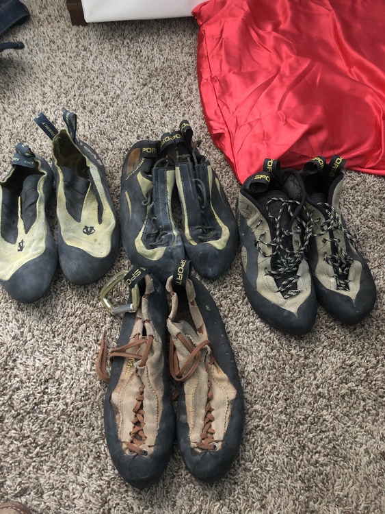 Climbing shoes, Boulder denim, big wall sling