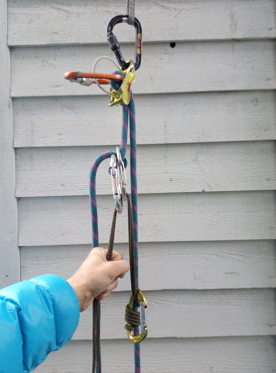 Thank you for the comments. Because of the reseting, in picture I use a 'biner lock' on break hand side and 'prusik jumar' on live rope side. Those are pretty fast to reset. |