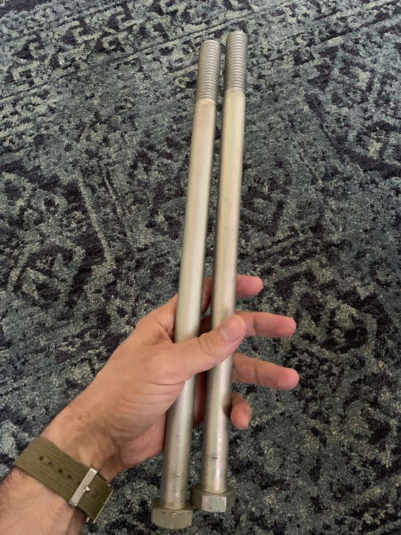 Phil, I got them from mcmaster.com, an industrial supplier- I was actually inspired by your design that I saw, with the metal pipe! And yea, no quick release on those bottom bolts haha - I’m also going to have a chain as a safety in the event of a failure somewhere, and anchor it in to a concrete post. Still need to sand off a bunch of the splinters on the wood and paint over the screws... some minor stuff but it’s close to 100%. Waiting for the padding to arrive before setting anything really difficult. |