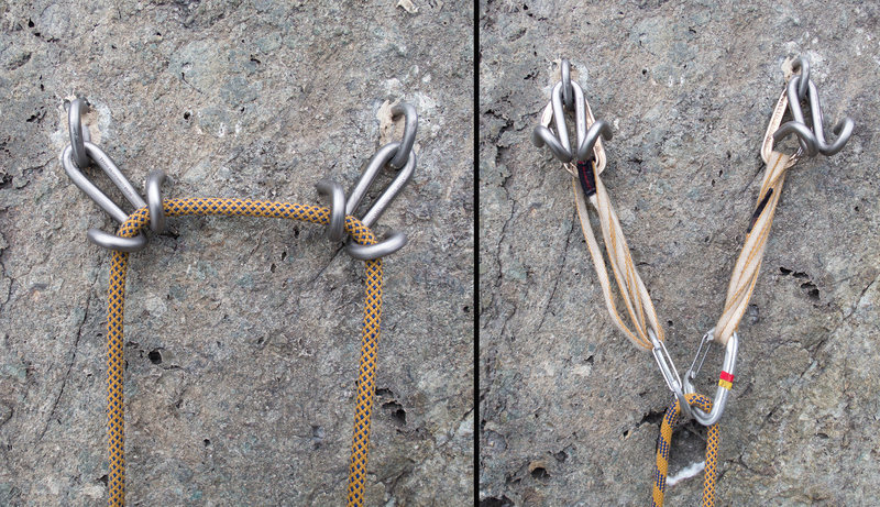 As mentioned, I always liked this set up. Only one rap ring that is redundant. Not too much chain. I thought rap rings last longer since they can rotate and distribute the rope wear. |