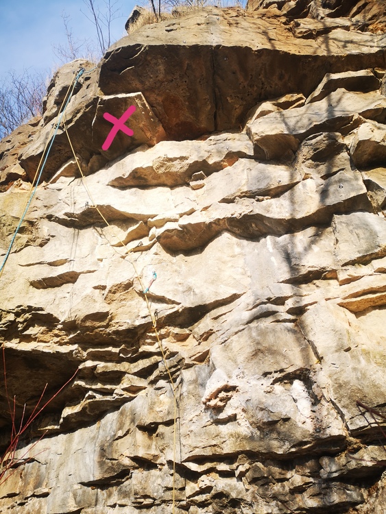 Hello, I have a game plan for reinforcing a massive flake at a crag I am developing and I am looking for some advice. The flake is roughly 4'*4'*1.5' and is limestone, so I'm guessing it weighs around 2000-4000lbs. It is immovably wedged in place and critical for the climb, but when pried on with a 3' crowbar the rock can be flexed from the far end and it is clearly detached from the wall. Right now it is safe to climb on but I am concerned about it eventually becoming loose with freeze/thaw cycles or fracturing from being flexed. My plan is to drill three 1/2"*18" holes through the flake into the roof above and glue in 3/8" stainless steel threaded rod backed with lock nuts/washers holding the flake. My concerns with this are 1) How do I inject glue into the main roof when the flake below it is around a foot thick? Can I extend the nozzles or buy glue with longer ones? 2) How to ensure glue is in the flake's hole? There is a void between the flake and the roof of a few inches, so the concern is that the rod would just push the glue out of the flake and into that gap area when being inserted. I was considering biting the bullet with some Hilti HIT-SC mesh sleeves, but a local developer told me not to worry about it and just backup the flake-side with nuts so that the glue is a redundancy. I also am wondering about just holding a washer on the backside of the flake holes while I push to the rod through to block the glue around it from following it out. Other thoughts that I had includ long wedge bolts, the downside being that it's limestone and glue would be preferred. I also thought about just connecting hangers on the flake to an anchor on the parent rock using chains... Ideas? Am I crazy to want to reinforce a flake of this size? |