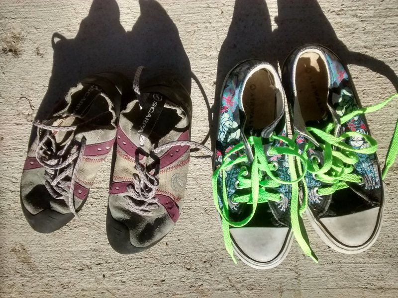 Totally up to you, OP. Those keds knockoffs are what I first climbed in. The first climbing shoes, were way, way, way, too tight. You can see how vastly smaller they were from street shoes. Totally tortured my feet. Dumbass salesperson. Now? More than five years in? About six or sevenish pairs of climbing shoes, only about four now. Only one I wear all the time. But, I don't burn through shoes (yes, because I don't get the time on rock some do). I have bought, then sold some too, when they just didn't work out. Sometimes, it takes tweaking to even find what suits your foot. Then, there's specializing, even just broadly. Maybe something for the gym. Something for cracks, etc. My next purchase? Most likely the whopping fat investment to upgrade my ice climbing boots, if Bozeman ice fest is back next year, or I otherwise have reason to think it won't be as impossible as this year to get on some ice. Have fun! Shoes are, uh, kinda a bit of a "thing" for many climbers. They're just shoes....but they do matter to us, disproportionately, lol! Best, Helen |