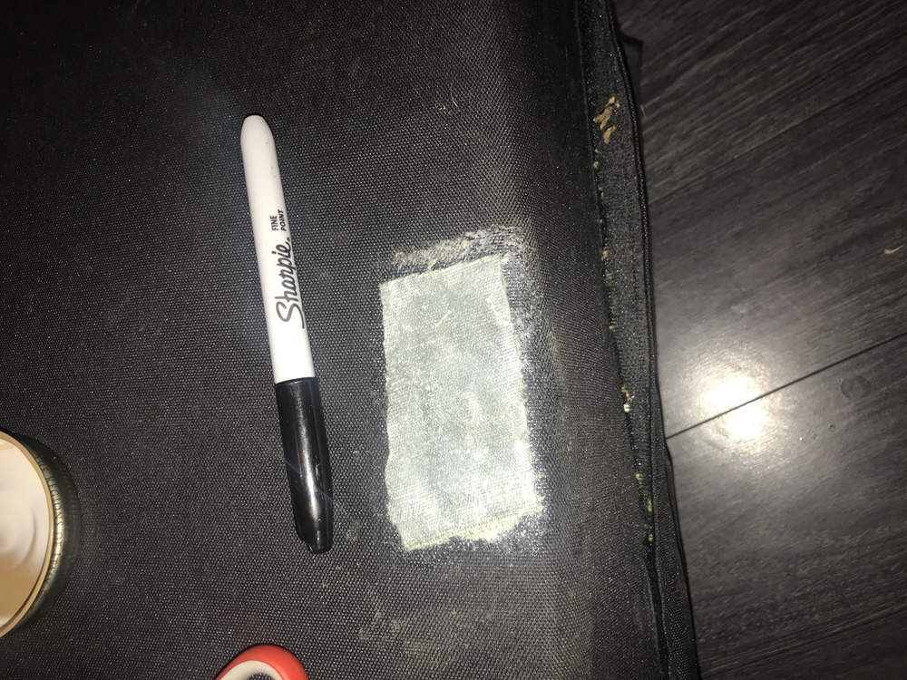 Here is the process of the repair, I used old climbing pants that became shorts that then became trash to cut out the patch. I chose to impregnate the whole fabric instead of the edges just because it seemed like the right thing to do. I could have used a better way to match the fabric color but I don’t really care. It’s strong, I’m happy, and if you total it all up it cost me maybe 5cents to make the repair. |