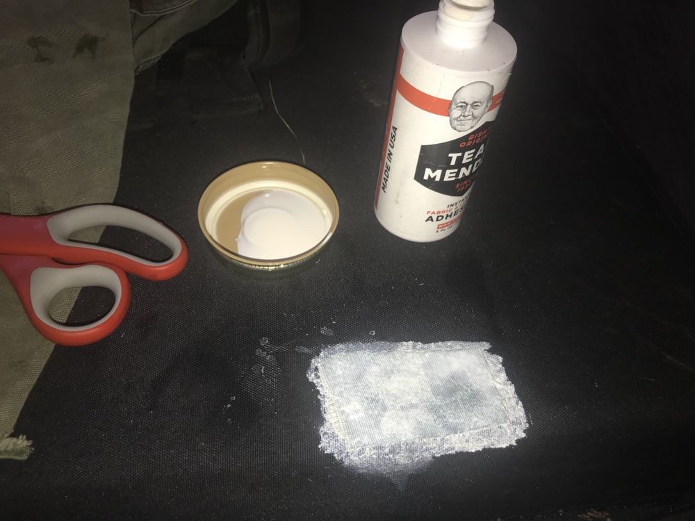 I honestly can’t say enough good about this product, mends any type of fabric almost instantly. Use a piece of fabric from old clothing and call it a day. This has worked a million times to quickly “stitch” my pants back together as well |