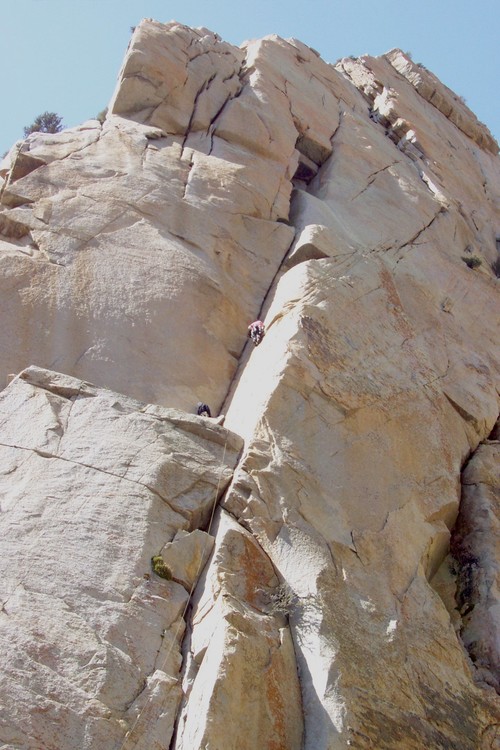 Dark Angel, Arches. Those bolts still mostly nails sticking out? Did it late '90s I think, before I started replacing bolts...sketch! SO...photo. This one is kind of obscure...the climber is on the upper right: Edit...guess I should read the rules better, Tony didn't confirm (but that's Dark Angel), and more importantly this one is definitely in violation of mega-obscurity...let me go look for something more reasonable. Hint on this one while I go find something else: the crag is not on MP at all, and it's in California. Edit: I'll leave that first one here so as not to annoy anyone, but here's my real (more fun & reasonable) entry: |