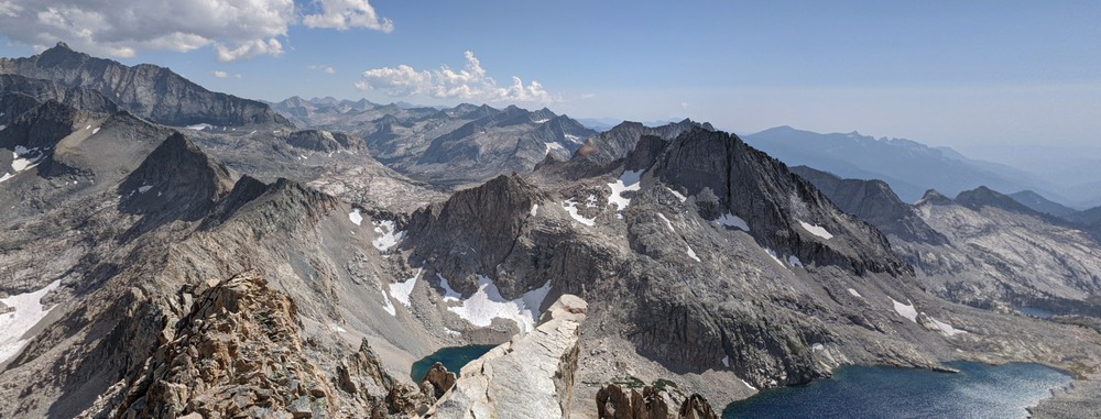 Best I can do is a picture Taken from Triple Divide Peak looking south. Black Kaweah on the far left and Lion Rock in the foreground above the pretty lake. Looks a little on the jagged side! You lookin to hit that this summer? Maybe this link works too Triple Divide photosphere |