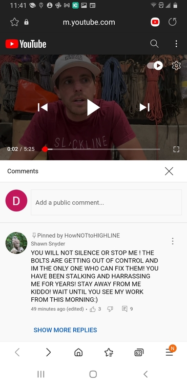 He admitted to the destruction of those bolts then deleted the post. He bares the responsibility of those actions. If he has a legitimate reason for these actions, the burden of proof rests with him. Were the bolts unsafe? Is he not culpable for reasons of insanity? Those are for him to prove. |