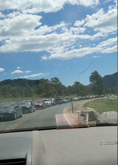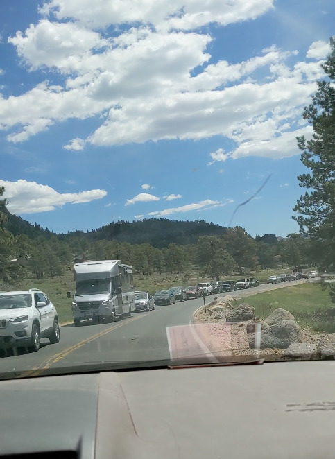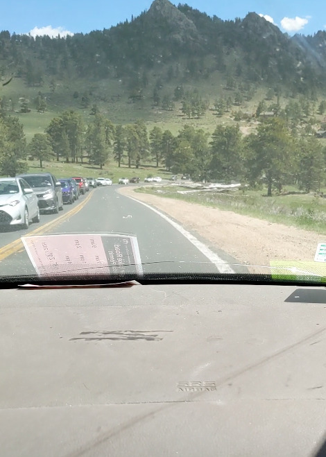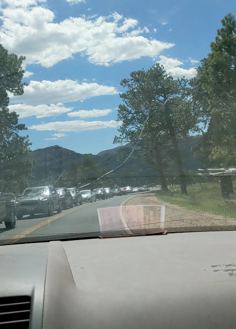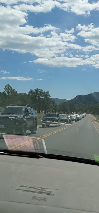 This is the current status of RMNP with reservation systems implemented. These pictures were taken on a weekday, leaving the park, just past the Bear Lake corridor entrance. The line stretched all the way from the entrance to the visitor center. Prior to this, I witnessed scores of people being turned around from the full parking lots, and these people presumably had reservations as well. So how exactly are reservations helping?? Seems to me like it's still a pretty bad experience the typical visitor.