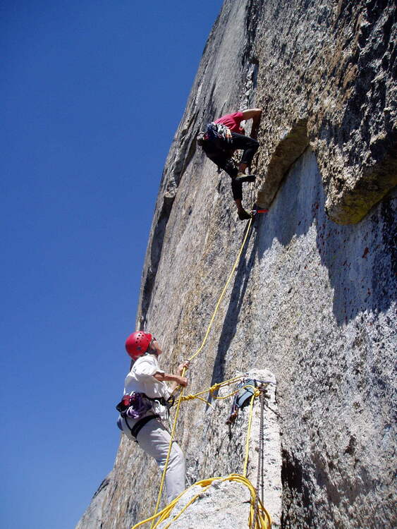 While I appreciate Bob’s submission because the picture is cool and Mikey showing off is awesome, may I respectfully submit that this picture is pushing the boundaries of what relatively well known constitutes? Per the OP, it is suggested that “3) It's supposed to be fun, not impossible. Some obscure pic of a route behind the local garbage dump isn't going to be any fun because nobody can guess it.” No, I am not suggesting that Tuolumne is the local garbage dump :) Nonetheless, sweet picture Bob, thank you for sharing! Mikey’s turn. |