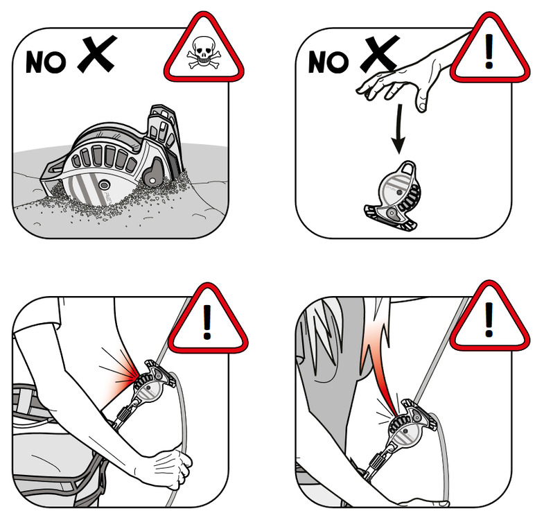 Greg Dwrote: In addition to the Revo not really "solving" the above mentioned problems, the connection points on the Revo are noticeably less robust than connection points on the Grigri/Eddy/similar devices (see Joe Healy's comments/videos, not exactly scientific but still very informative). It's probably not very consequential in single-pitch, but I'd definitely feel more comfortable catching a high-factor or otherwise awkward fall on a Grigri than a Revo. Edit: Not to turn this into a Revo-bashing thread, but I just pulled out my Revo and was reminded of another issue. It's very difficult to inspect the internal components of a Revo, which is a poor complement to all of the warnings WC has about getting dust or debris in the device. Does anyone know how sensitive the Revo is to this failure mode? I can see how jamming a stick in the device could cause a failure, but how worried should I be about dropping the Revo in the sand? Edit 2: Wasn't paying attention and hit my post limit. From the Revo manual (https://www.wildcountry.com/media/pdf/c1/6f/91/RevoUserManual-OnlineVersion-compressed.pdf, page 9): Obviously the device will function with some amount of dirt/grime, but based on the manual there is the potential for excess debris to block the locking mechanism. I do not know where those thresholds are and I haven't seen any testing to that effect. I do have a Revo I'd be willing to donate if anyone is motivated enough to do this testing, the only caveat being one of the tubers is a bit bent from a knot jamming in the device during some off-label use testing. Edit 3: Another graphic that seems relevant to the original topic, especially the bottom panel (page 4): |