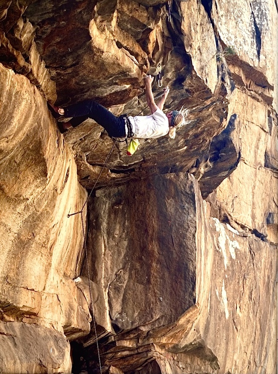 One of the only photos that exist, The Hammerhead Roof, 5.11, one of over 100 pitches on insanely featured and cast iron solid, fine grained granite, up to 200 ft A few 5.10 pitches, 75% 5.11, 20% 5.12, a few 13’s Aesthetics are off the chart, with a seasonal river, immense boulders, and giant trees just below the crags. Most routes are north or east facing and average vertical with roofs, or overhanging, a dozen overhang 10 to 15 ft in less than 100. |