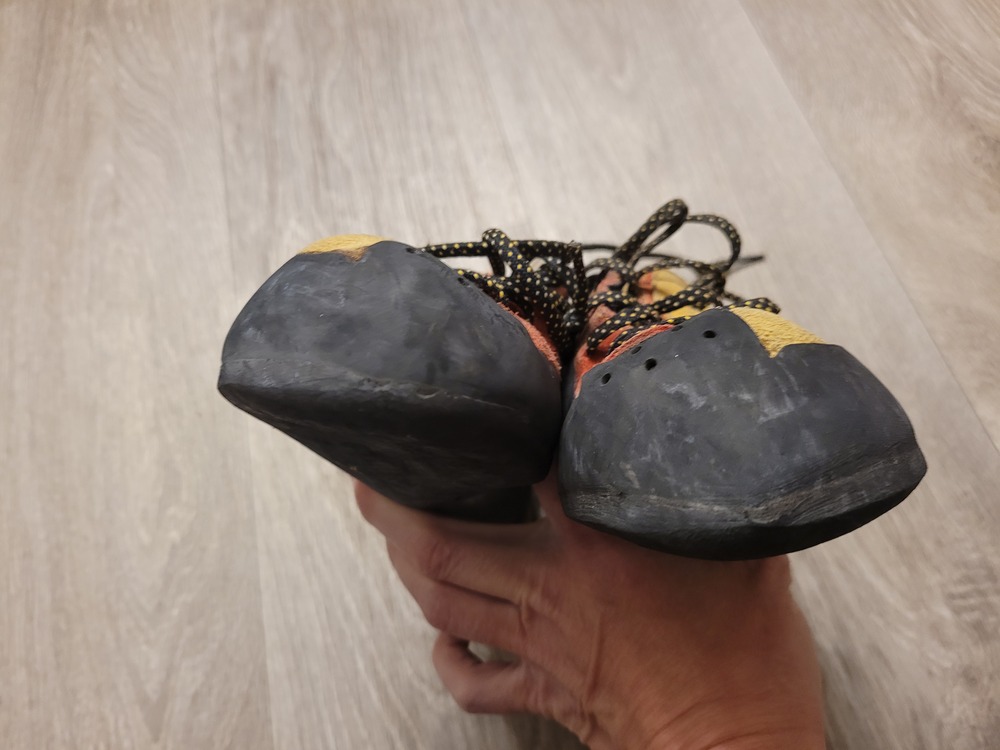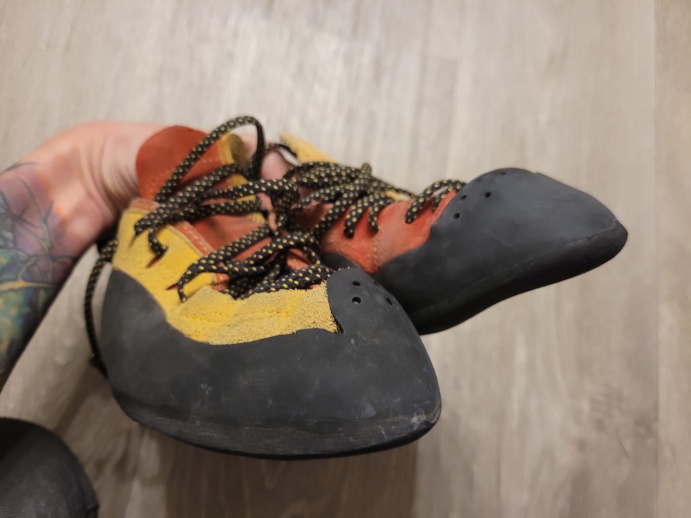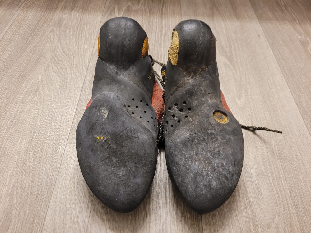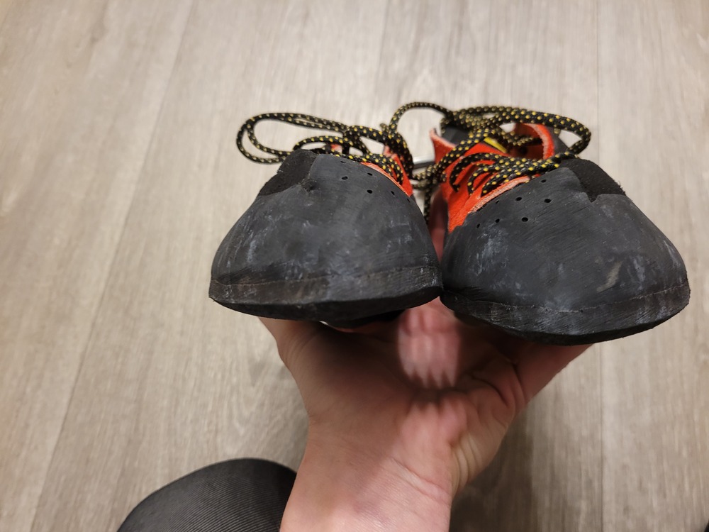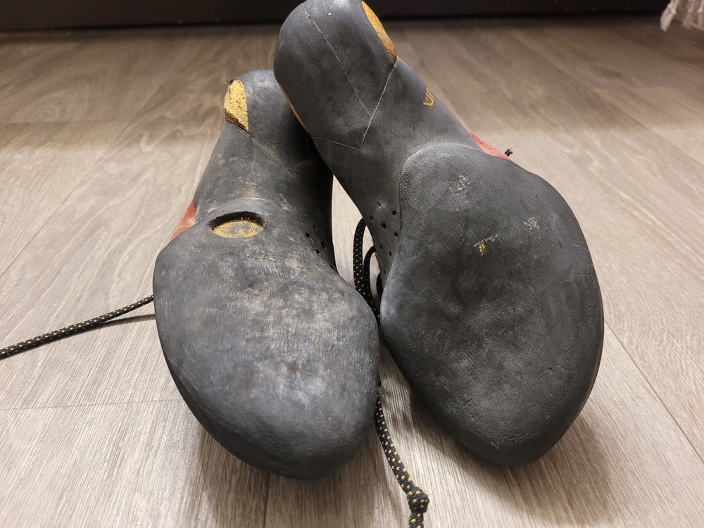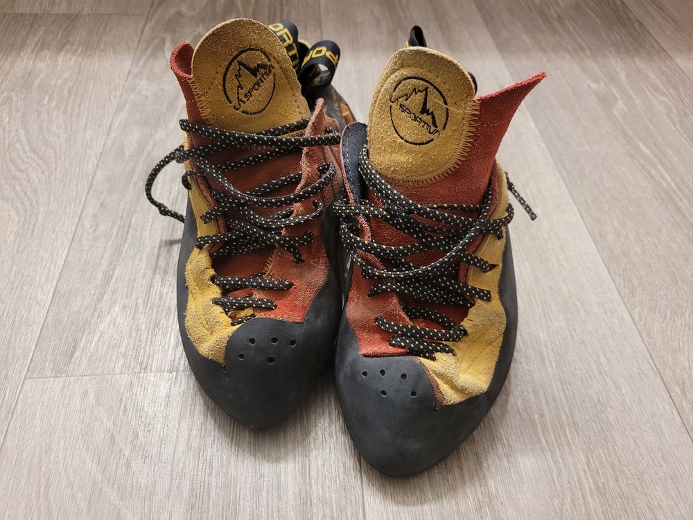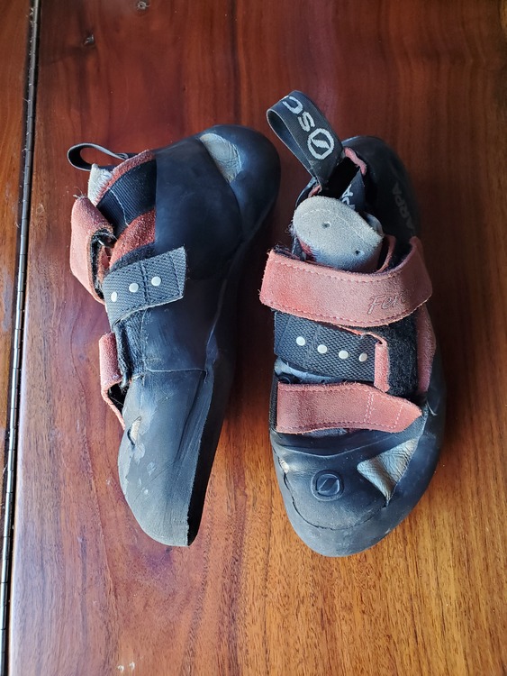 Climbing Shoes La Sportiva Testarossas, 38.5, worn out once for a total of 3 warmup routes. Scarpa Instinct, 38.5, worn maybe 10x, still plenty of life left in them. Old school Testarossas, 38.5, bought used and worn twice, definitely at least a season left before needing resoled. Old school Testarossas, 38, decently worn, probably a season left before needing resoled. |