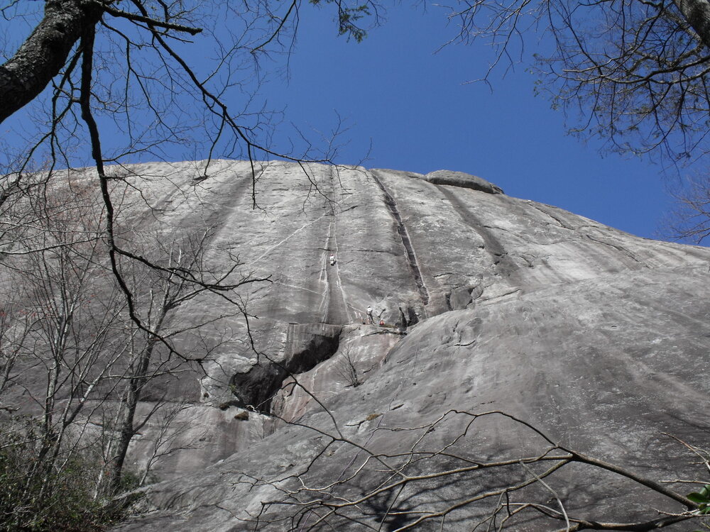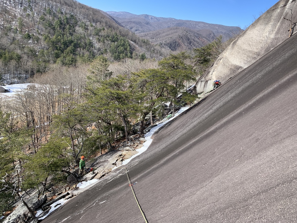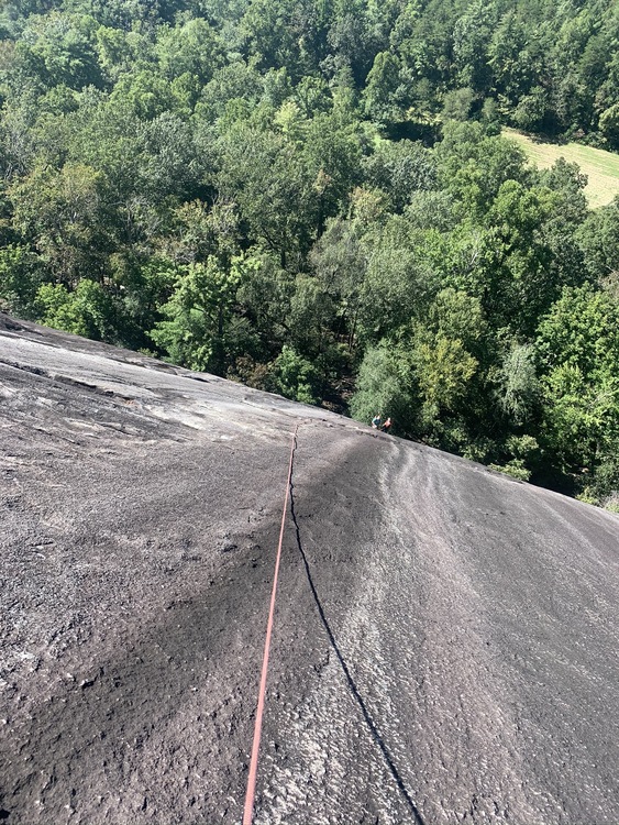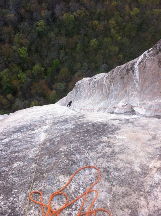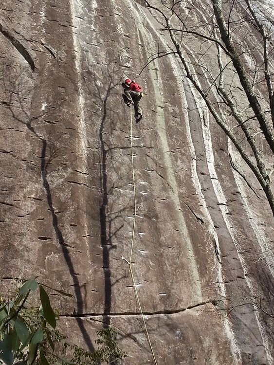 Potter Wonderlandwrote: Our granite domes feel slimy in the summer. Minimal bolting and minimal features make slimy slabbing tough. This is Yardarm on Stone Mountain, last week- |