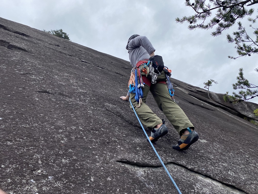 As if it hasn’t already been said enough: Western NC is a gem as far as slab climbing goes. Stone Mountain and Looking Glass are both awesome, although I’m no hardman so they certainly keep me on my toes. A little more runout that I was used to but damn if it didn’t have my heart racing The eyebrows of looking glass willingly accept many tricams!