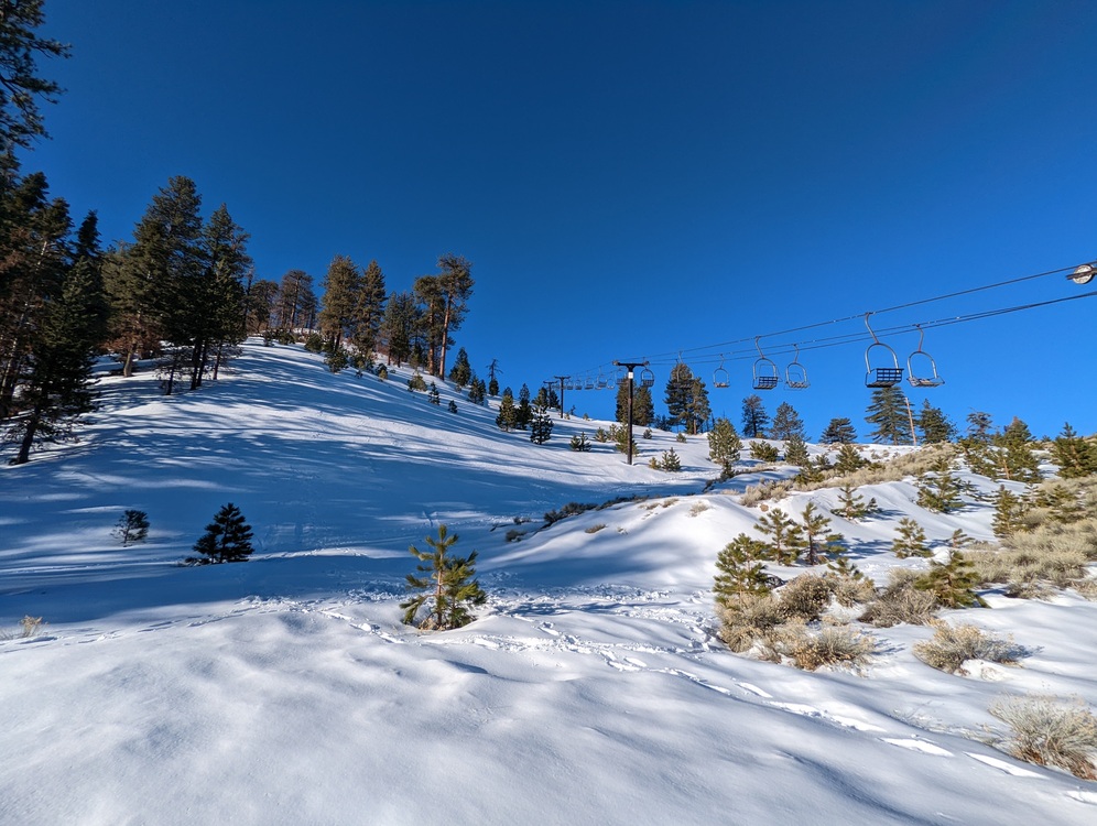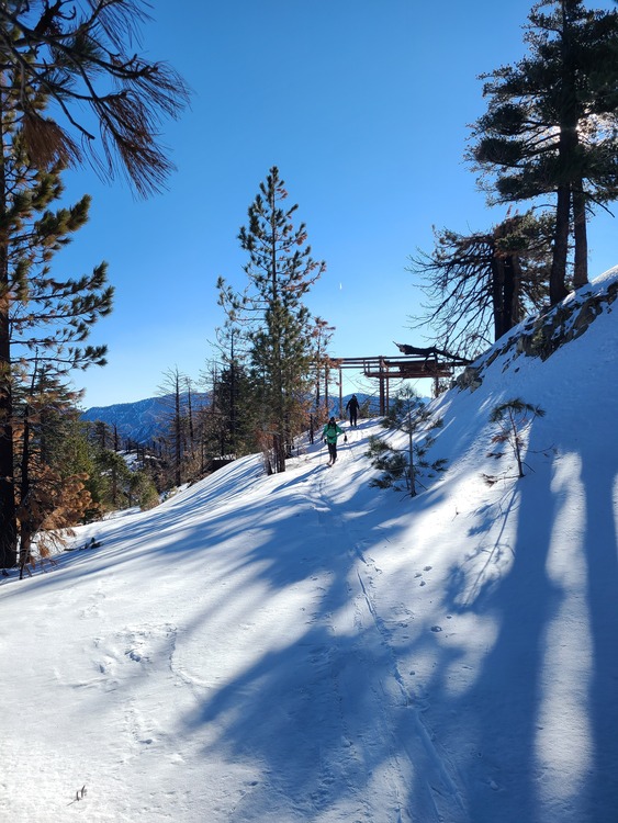 Was able to make it out with a couple people this last Saturday to Kratka ridge in the San Gabriels and the snow conditions were good. Almost like blower power from this last storm. Maybe like 4 to 5 inches of fresh snow on top of a pencil hard layer and a knife hard base below that. Little snow on southern aspects. Was great skiing for the day, supposed to warm up a lot next week so there is a pretty short window to get out there.
