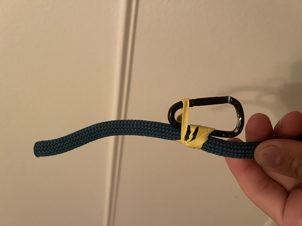 Hey guys is this safe to rap off? Yellow rubber band secures rope for rap and then you pull the rope by yanking just like the bealls escapade. I’m using a keychain biner because I don’t want to leave the locker I stole from my gym and I can’t figure out how to get the rope through the chains… why don’t they have openable gates climbing is impossible!!!