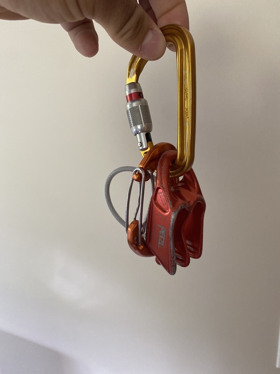 I actually can’t remember where I got it, I don’t seem to be able to find the email. It might even be from the Grivel online shop itself. It is available there now. I am located in Europe though so it might be different. Here’s a picture next to a couple of other biners. I checked again and I have to say it’s not 100% round like I said, but more like 99% - there’s a tiny flat surface from the forging. But it is so small I could barely see it and it will definitely smooth off completely within 1 or two rappels on an older rope. FYI this other grivel biner is super round also (66g), but I don’t like to use this sort for guide mode myself. It’s pretty cool for attaching devices for self belay stably in the correct orientation. Some people do like these ones with an extra clip for regular belaying though I believe. |