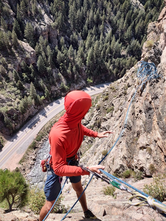 Nick Herdegwrote: Make sure you post this image on the route page with the caption “ROPE!”. Rappelling pics are the most badass climbing pics. They are best when shot from below or when taken as a selfie part way down. |
