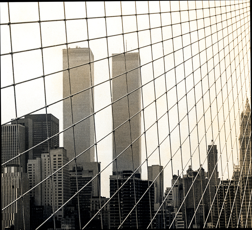 I took this from the Staten Island Ferry crossing New York Harbor in 1972. The structures were built, but the interior spaces were still being finished. They were the pride of the NY skyline. Who could imagine what was to come. It's hard to believe that it's been 21 years since that morning when Jan was pounding on the door to my room and saying, with some urgency, "Kris, you need to get out here, the world's a different place!" From the Brooklyn Bridge. |