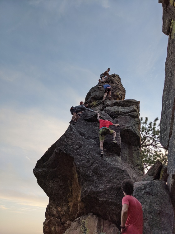 slightly different angle of the same rock: not the eaglet this is a very popular formation, though most folks never make it on top not the first flatironette -- even more popular! (though mostly for hikers) you got it Samuel |