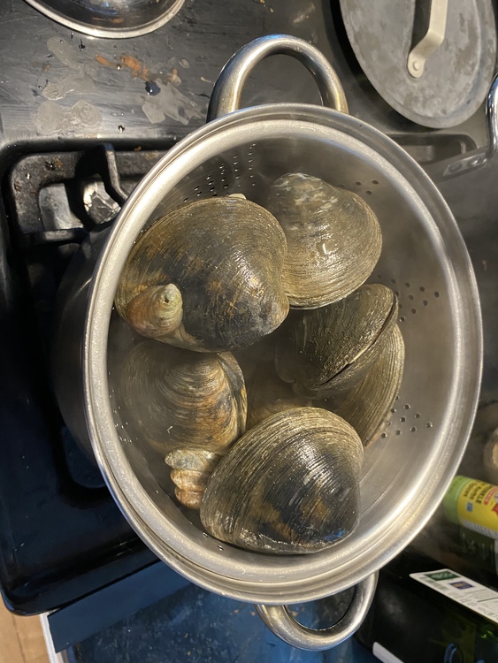 After college, Droid and I dug quohaugs for a living. He’s still doing it part time and I’m having some he brought for dinner. |