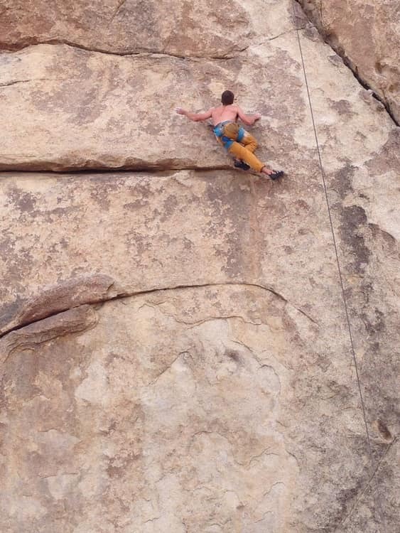 ^ Pretty rock .... harness on with perhaps a piece of gear on the left gear loop... no rope on climber, camouflaged rope, camera trick, rope photoshoped out? |