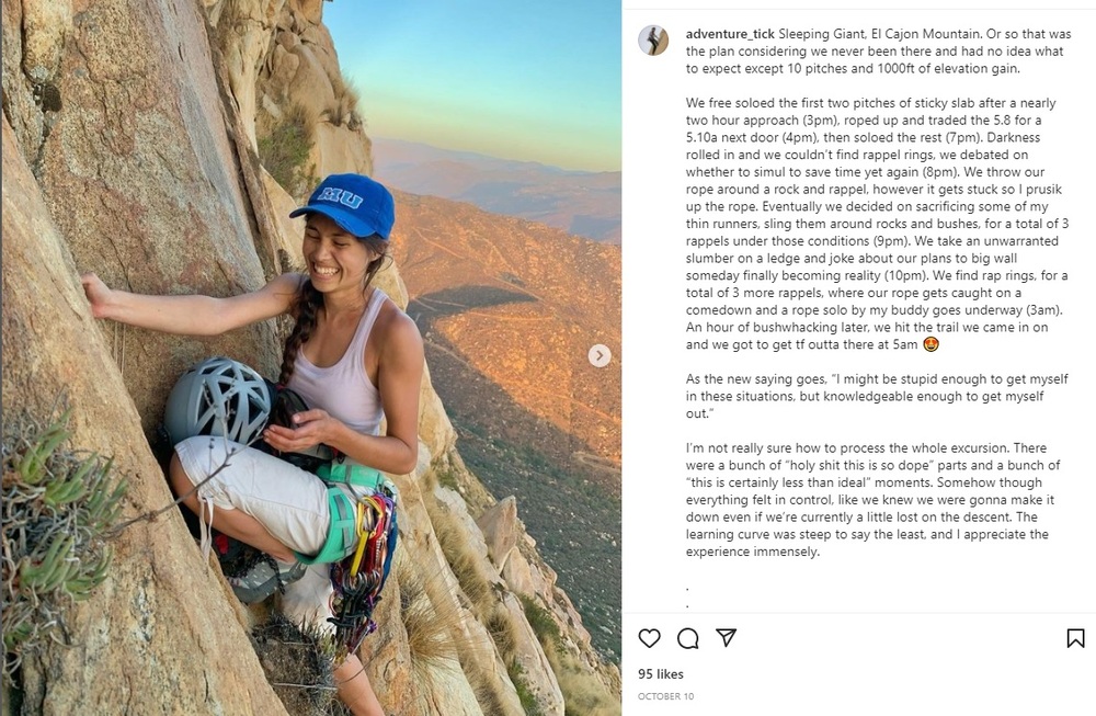 This one hits close to home. I had some judgmental thoughts on this, mostly revolving around how traumatic it must be for other climbers to witness such an accident. But then I remembered when I was 22, I used to rip on my motorcycle down country roads back and forth from school to see the folks back home. Some years later a friend of the family was killed on those same roads when a tractor pulled out of a blind driveway. I finally learnt my lesson when I wrecked in the Santa Monica mountains and sold the bike for good . Nowadays I'm more likely to pick wildflowers than doing anything too risky. The kind of wisdom that comes with age I suppose. It is hard to take something away from someone, that makes them feel alive! ... P.S. Dachel, glad you feel comfortable posting up here. Take care of yourself! I put 2+2 together and realized my friend and I were the goons that were surprised to see you rope soloing on Lie Detector last week. I was the one that asked, 'how'd you get the rope up there ??' haha Give me a heads up if you ever want to talk and have a chill day out there. Take care of yourselves, everyone !