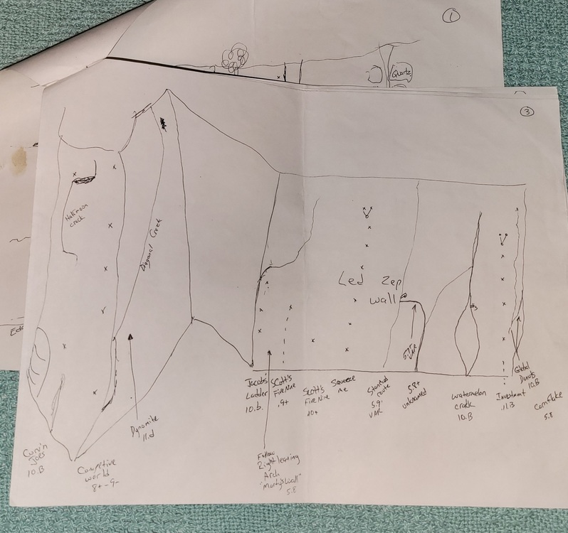 Really fun crag! I agree that having those bolted lines back would make it pretty top notch for a smaller crag. A couple of trad lines to be had there otherwise mostly top roping at the moment. Lots of cleaning with a steel wire brush needed to bring some of those lines back. Who wants to go rejuvenate this place?? |