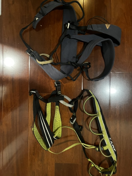 Camp Alpine Flash harness - okshape no fraying of any material $35 Brynje mesh shirt with shoulder pads navy blue size Medium but fits like Small if you have guns -$50 Metolius Ultralight Mastercams - size 6 and 7 (green and light blue) comes with your choice of nano biner. $40 each Alpine draws. Your choice of camp nano or petzl ange s biners (have too many of both). One has a blue ice sling. Also have a trango sling and camp sling available. 7 draws available but you get the idea. price negotiable based on carabiners, $12-22 each |