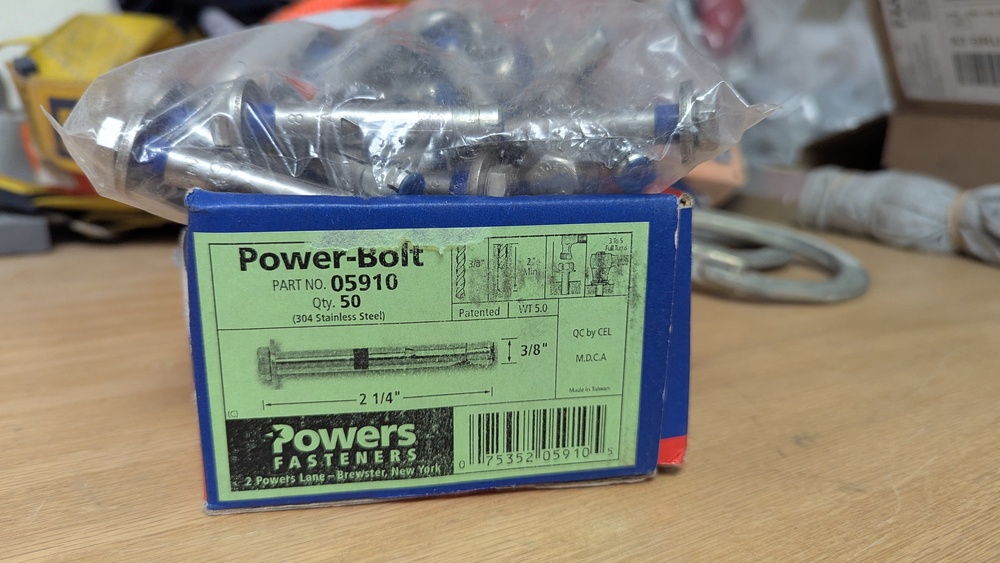 Anybody want to buy some Power-Bolts? I've got 91 of the 304 SS 3/8" x 2 1/4" purchased back in 2010 or thereabouts, so these ones were made in Taiwan. $250 shipped Edit: sale pending |