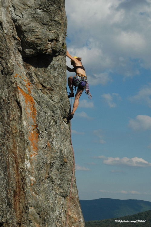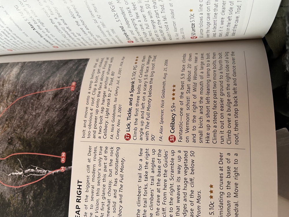 Alan. Deer leap in Killington VT. The right side of the cliff didn't have cracks for protection so It was deemed chossy and unsuitable for climbing for several generations.. just needed a bit of tough love. This summer a young kid asked me why Celibacy at 9+ was harder than Wild Women 10a which is right next it. Kids these days ;) |