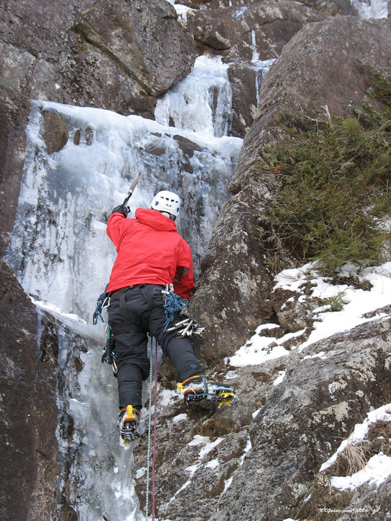 Great pictures Nick and Bob ( your's is very 'atmospheric'). Nick where is Celibacy--ominous 9+ grade???? I've started the New Year off with a cold/flu thing--likely a 'gift' from our daycare attending 2yo grandson during their Christmas visit!!! Slowly getting better though and it has been too cold and raw ( lot of wind) and not great snow, for wimpy me to want to get outside anyway. Guy, fortunately my cardiologist is a climber, so he understands.....!!!! I'm seeing him for my 'annual' in a few days, hopefully he will still be encouraging. Keep the inspiring photos coming everyone. |