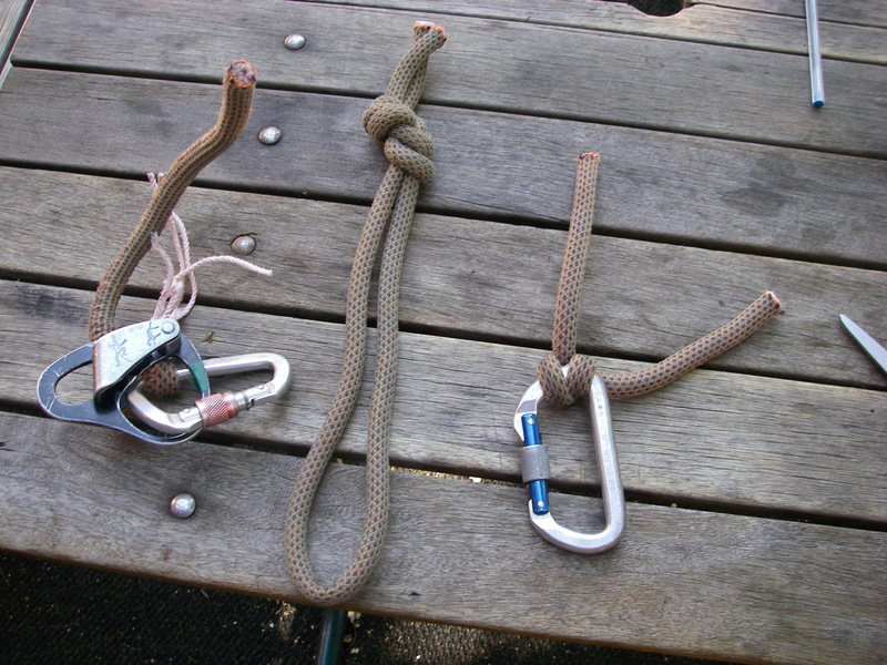 Tom Grummon wrote:Jim, Cool test, but I'm having a hard time picturing the second failure mode, any chance you have pictures? I think what he's saying is that in the first mode, the load strand squeezes past the brake strand into the V-grooves. Everything get's wedged in and damn near impossible to take apart. You can neither continue to belay or lower. If i catch what he's saying correctly, the second mode is a continuation of the first. In the first mode, the brake strand is starting to come out the top while the load strand is squeezing past it into the V-grooves. The second mode is when this twist continues thru the slot and you essentially end up with the device rigged backwards (brake strand on top), except there is possibly has a twist in the rope between the device and the biner.