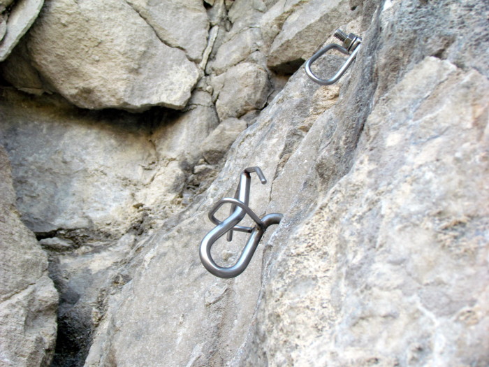BigFeet wrote:"but some of the designs leave me scratching my head like one single wear point that once worn require replacement of the whole contraption." - M Sprague All about the money... buy another one - they hope. Well the installer didn´t pay for that one and won´t have to pay for the replacement either, same as all the rest of the bolts there which visiting cölimbers didn´t contribute to. It was installed by the current President of the BMC who just happens to be my brother and I made it. We did a fair few of these at one time but some climbers can´t work out you just put a bight of rope up through the guard bar and drop it over the centre bar, the guard bars ended with people hanging on them and getting bent so we discontinued the design. We replaced that design with one which confused people even more so that is also discontinued! They hold about 78kN by the way as they are 12mm stainless bar and 4" deep in the rock. The bolt above was added later so people could install the rope and then a draw above for top-roping without wearing the lower-off but still have redundancy. And us Euros know that placing the bolts so the "equalise" is illogical and a waste of time and usually money so we all do them vertically more or less and we don´t rap off sport routes, ever.