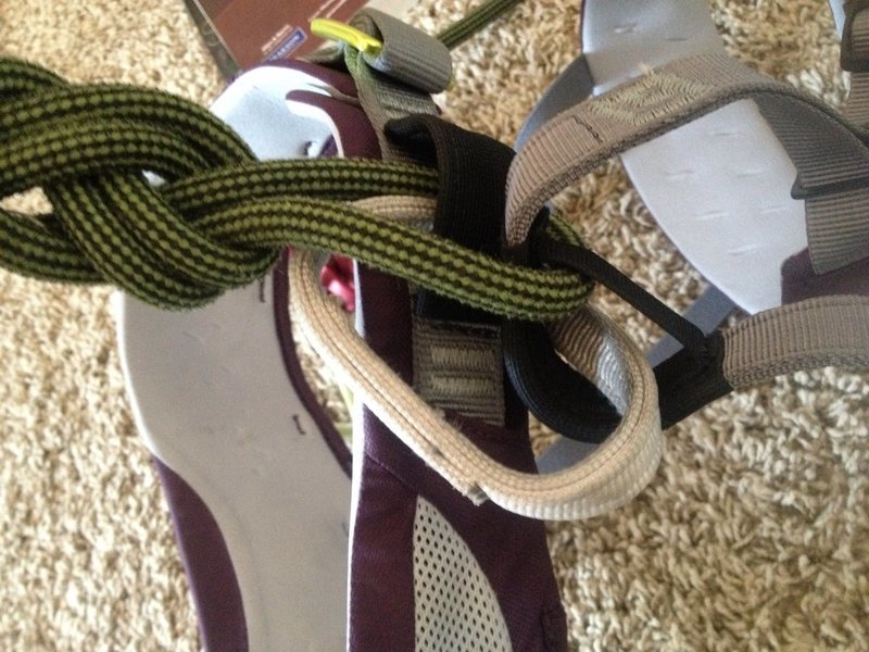 See that little strap that broke? A woman somehow managed to put a locking biner through only that non-load bearing piece while canyoneering and did several rappels before it snapped. Metolius makes that load bearing on their Safe Tech harness and it would be good if everyone that makes harnesses would at least beef it up to take more wear.