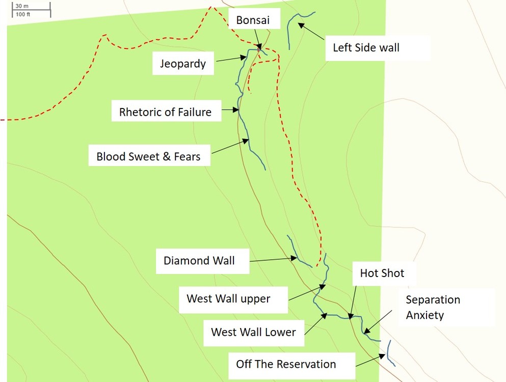 Thanks for any beta on this. Hello Nick, Hard to quantify; When does a route with bolts become sport? When does a boulder problem become a solo? When does a top rope problem become trad? anyway... 31 sport, 182 trad lines, 36 boulder problems and 29 top rope problems. You can decide where the categories overlap or intersect.