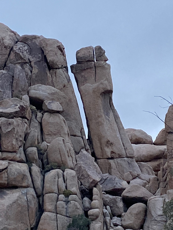 Speaking of towers. Does anyone know the name of this cool feature near "The Blob" in Hidden Valley? Reminds me of two Easter Island Motus standing back to back. |