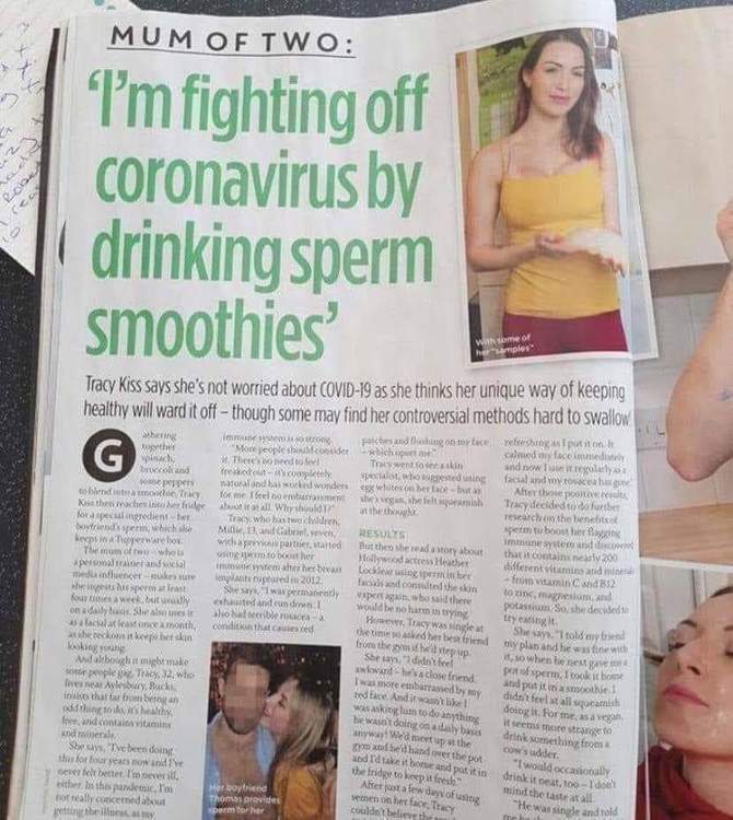 This is fucking great, I’m going to self medicate right now!!!https://closeronline.co.uk/real-life/news/sperm-smoothies-facials/