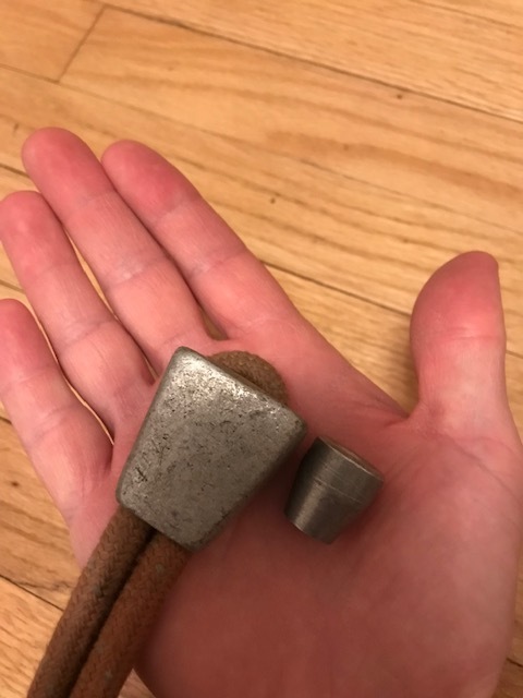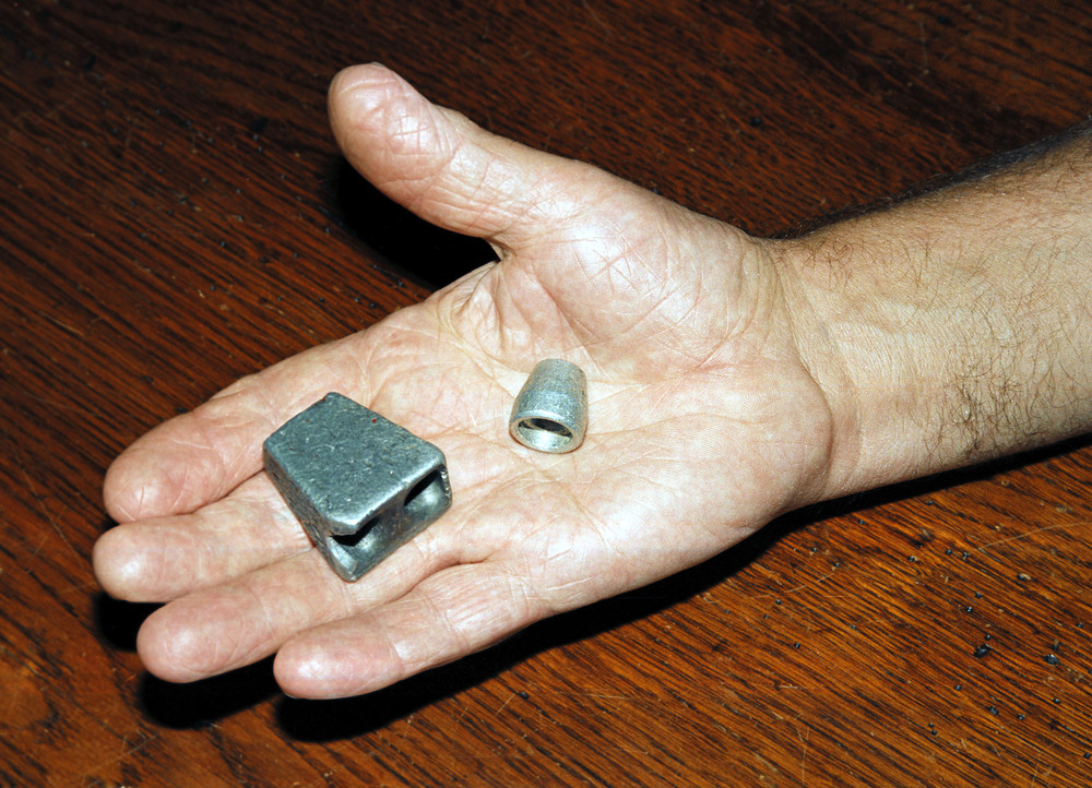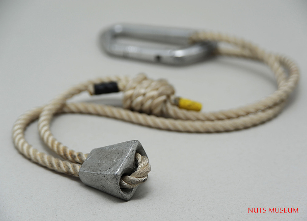 MOAC & Acorn in John's hand Most of the difficult cracks which were climbed by hand-jam and layback techniques needed however a wider nut. After measuring some of them, John Brailsford, always him, made models in balsa wood in the form of truncated, oblong pyramids. A Derby company, Coronet Tools, specialising in aluminium casting made six prototypes in L.M. 6 in which John Brailsford drilled two holes and created a radius to join these holes. In the sixties, the testing of ropes was based upon Maurice Dodéro’s works. Dodéro used components which related to the carabiner then in use - a 10 mm diameter standard. John Brailsford realized that, if he could increase the diameter over which the rope passed on the top of the nut, he would greatly reduce the risks of cutting the rope sling at this critical point of contact. A star was born: the MOAC! Joe Brown, Don Roscoe (of the Rock & Ice Club), John Brailsford himself and his regular partner, Doug Cook, used them and found they worked at a level of safety not enjoyed before. In 1962, the first batch of MOACs was cast in Manchester and the guide, Peter Gentil, hand-finished them. Mounted on 9 mm rope, other sizes could be obtained by filing them down to reduce their thickness. Originally, Alan Kimber, a Scots-based friend of John Brailsford, thought about calling the new nut Johnny, which also is a slang term for a condom... Ellis Brigham, owner of a chain of outdoor shops in UK who sponsored the die cast first production run, also owned a climbing equipment import company, Mountain Activities. Therefore the name MOAC was chosen for this nut, that many British and American climbers still carry them for sentimental reasons. Snowdon Mouldings Curver - another John Brailsford's invention. |