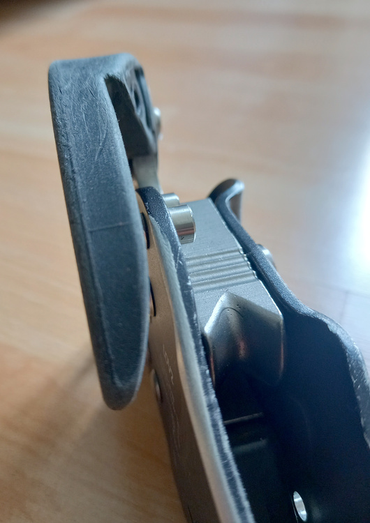 I want to make it clear that I am not 100% sure that what happened to me wasn’t an operator error or that there could have been a piece of debris stuck in it that created the problem.  I also must re-emphasize that I am not certain that the handle was the cause of the problem.  I don’t know if it caught on the body and I don’t know if the slop in the play of the handle is an issue. The video I took was only hypothetical.  I am, however, 100% certain that I slid down the rope a bit, in a manner that has not happened to me in 8 months of extensive route development.