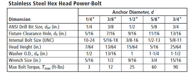 It's now 18 ft lbs for 3/8" and 30 ft lbs for 1/2", up from 12 ft lbs and 25 ft lbs. The sale thread mentioned installation torque, and I noticed that the installation torque values changed in the latest spec sheet. No idea if anything actually changed with the bolt, but the 50% increase for the 3/8" size is substantial. New: |